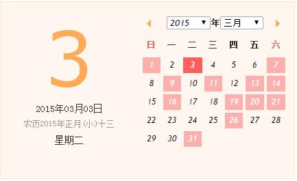 2015年03月09日 農(nóng)歷01月(小)19日 星期一 沖虎(戊寅)煞南