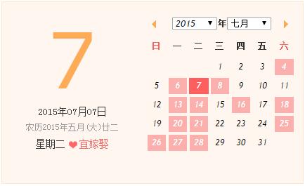 2015年結(jié)婚好日子之7月結(jié)婚吉日
