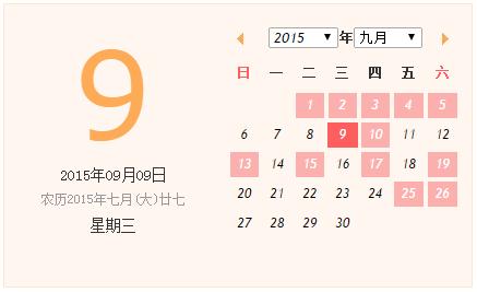 2015年09月02日 農(nóng)歷07月(大)20日 星期三 沖豬(乙亥)煞東