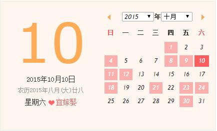 2015年結(jié)婚好日子之10月結(jié)婚吉日