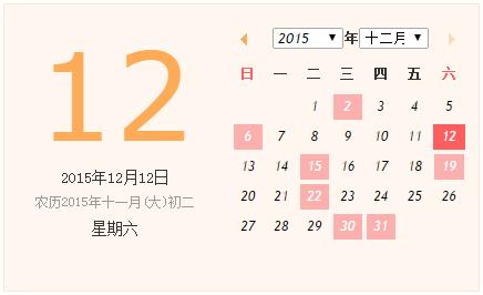 2015年12月22日 農(nóng)歷11月(大)12日 星期二 沖虎(丙寅)煞南